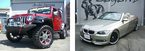 USパーツ、国産パーツ、ローダウン、リフトアップ、ホイール、ナビ、オーディオ、HID取付、シートリペア、シート張り替え、カスタムペイント etc...
